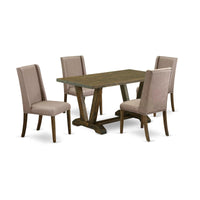 Casafoyer V776Fl716-5 5 Piece Dining Table Set Includes A Rectangle Kitchen Table With V-Legs And 4 Dark Khaki Linen Fabric Upholstered Chairs, 36X60 Inch, Multi-Color
