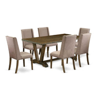 Casafoyer V777Fl716-7 7 Piece Dining Room Table Set Consist Of A Rectangle Kitchen Table With V-Legs And 6 Dark Khaki Linen Fabric Parsons Dining Chairs, 40X72 Inch, Multi-Color