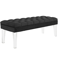 Casafoyer Valet Tufted Button Performance Velvet Upholstered Bedroom Or Entryway Bench With Acrylic Legs In Black