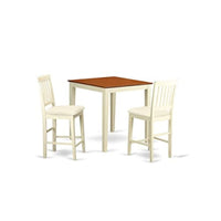 Casafoyer Vern3-Whi-C 3 Piece Counter Height Dining Set For Small Spaces Contains A Square Wooden Table And 2 Linen Fabric Upholstered Chairs, 36X36 Inch, Buttermilk & Cherry