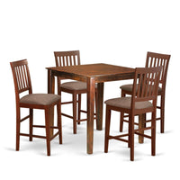 Casafoyer Vern5-Mah-C 5 Piece Counter Height Dining Table Set Includes A Square Kitchen Table And 4 Linen Fabric Upholstered Dining Chairs, 36X36 Inch, Mahogany