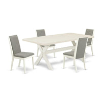Casafoyer X-Style 5 Piece Kitchen Set Includes A Rectangle Dining Room Table With X-Legs And 4 Shitake Linen Fabric Parsons Chairs, 40X72 Inch, X027La206-5