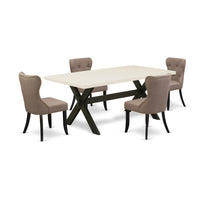 Casafoyer X-Style 5 Piece Room Furniture Set Includes A Rectangle Dining Table With X-Legs And 4 Coffee Linen Fabric Upholstered Chairs, 40X72 Inch, Multi-Color