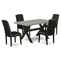 Casafoyer X-Style 5 Piece Set Includes A Rectangle Dining Room Table With X-Legs And 4 Black Faux Leather Parsons Chairs, 36X60 Inch, X696En169-5