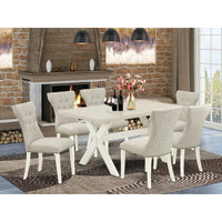 Casafoyer X026Ga235-7 7 Piece Dinette Set Consist Of A Rectangle Dining Room Table With X-Legs And 6 Doeskin Linen Fabric Upholstered Parson Chairs, 36X60 Inch, Multi-Color