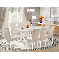 Casafoyer X027Ba201-9 9 Piece Dining Room Table Set Includes A Rectangle Kitchen Table With X-Legs And 8 Cream Linen Fabric Parson Dining Chairs, 40X72 Inch, Multi-Color