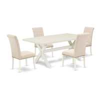 Casafoyer X027Br202-5 5 Piece Dining Set Includes A Rectangle Dining Room Table With X-Legs And 4 Light Beige Linen Fabric Upholstered Parson Chairs, 40X72 Inch, Multi-Color