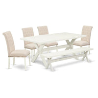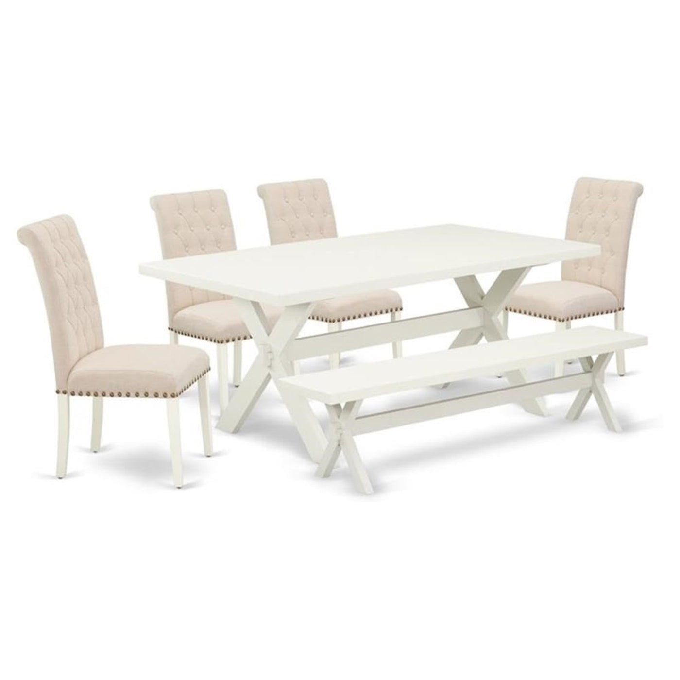 X027Br202-6 East West Furniture 6-Piece Table Dining Set-Light Beige Linen Fabric Seat And Button Tufted Chair Back Parson Dining Chairs, A Rectangular Bench And Rectangular Top Wood Kitchen Table With Hardwood Legs - Linen White And Linen White Finish, East West Furniture 6-Piece Modern Dining Table Set With 4 Upholstered Dining Chairs - Indoor Bench And Rectangular Dining Tablethis Dining Table Set Includes 4 Awesome Dining Chairs, An Awesome Kitchen Bench, And A Wonderful Modern Dining Table. This Rectangular Table Is Offered In An Elegant Linen White Finish. In Addition, The Dining Chairs In A Light Beige Linen Fabric And Awesome Linen White Wood Bench Top To Enhance The Elegance Of Any Kitchen Or Dining Area. Our Dining Room Set Delivers Great Durability Because This Dining Room Table And Mid Century Modern Bench Is Built From High Quality Asian Wood Which Can Bear The Weight Of 300 Lbs. We Have Created These Parson Dining Chairs And Dining Table, Wood Bench With The Help Of Highly Experienced Carpenters, Who Generate A Smooth And High-End Finish To This Kitchen Set. We Try To Offer Innovative As Well As Easy To Assemble Products. Our High-Quality Dining Set Is Perfect For You And Your Beautiful Dining Room As Well As The Kitchen Area. You Can Use It For Casual Home Parties Or Intimated Gatherings. Keep Enjoying East West Modern Furniture!Features:Color Of Parson Dining Room Chairs: Light Beigecolor Of Wood Table Top: Linen Whitecolor Of Dining Room Table Base: Linen Whitecolor Of Dining Bench Top: Linen Whitecolor Of Dining Bench Base: Linen Whitedining Room Table Dimensions: Length 60; Width 36; Height 30Kitchen Parson Chairs Dimensions: Length 23; Width 18; Height 40Dining Bench Dimensions: Length 72; Width 15; Height 18Package Include: 4 Dining Room Chairs And A Rectangular Dining Table And A Lovely Kitchen Bench
