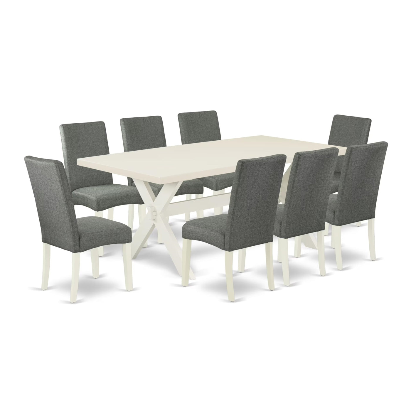 Casafoyer X027Dr207-9 9 Piece Dining Set Includes A Rectangle Dining Room Table With X-Legs And 8 Gray Linen Fabric Upholstered Parson Chairs, 40X72 Inch, Multi-Color