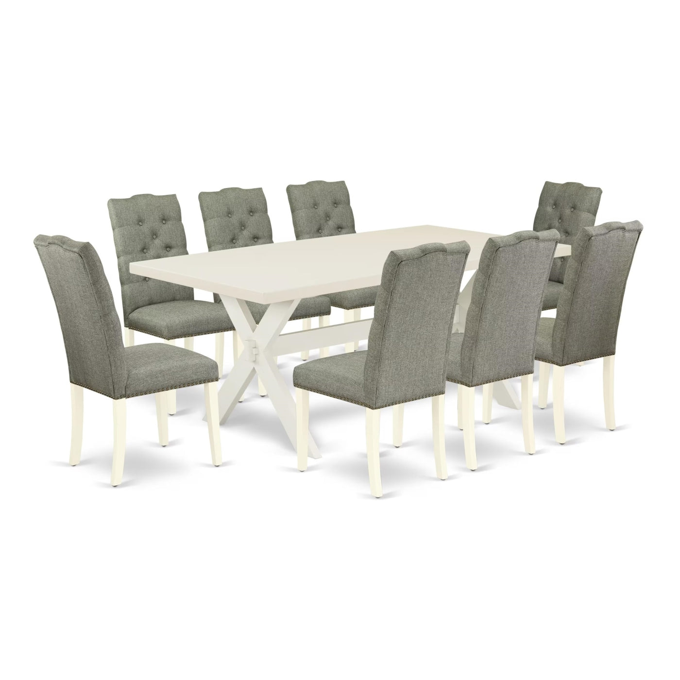 Casafoyer X027El207-9 9 Piece Kitchen Table & Chairs Set Includes A Rectangle Dining Room Table With X-Legs And 8 Gray Linen Fabric Parson Dining Chairs, 40X72 Inch, Multi-Color