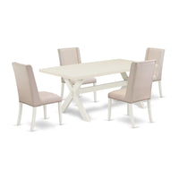 Casafoyer X027Fl201-5 5 Piece Kitchen Table & Chairs Set Includes A Rectangle Dining Room Table With X-Legs And 4 Cream Linen Fabric Upholstered Chairs, 40X72 Inch, Multi-Color