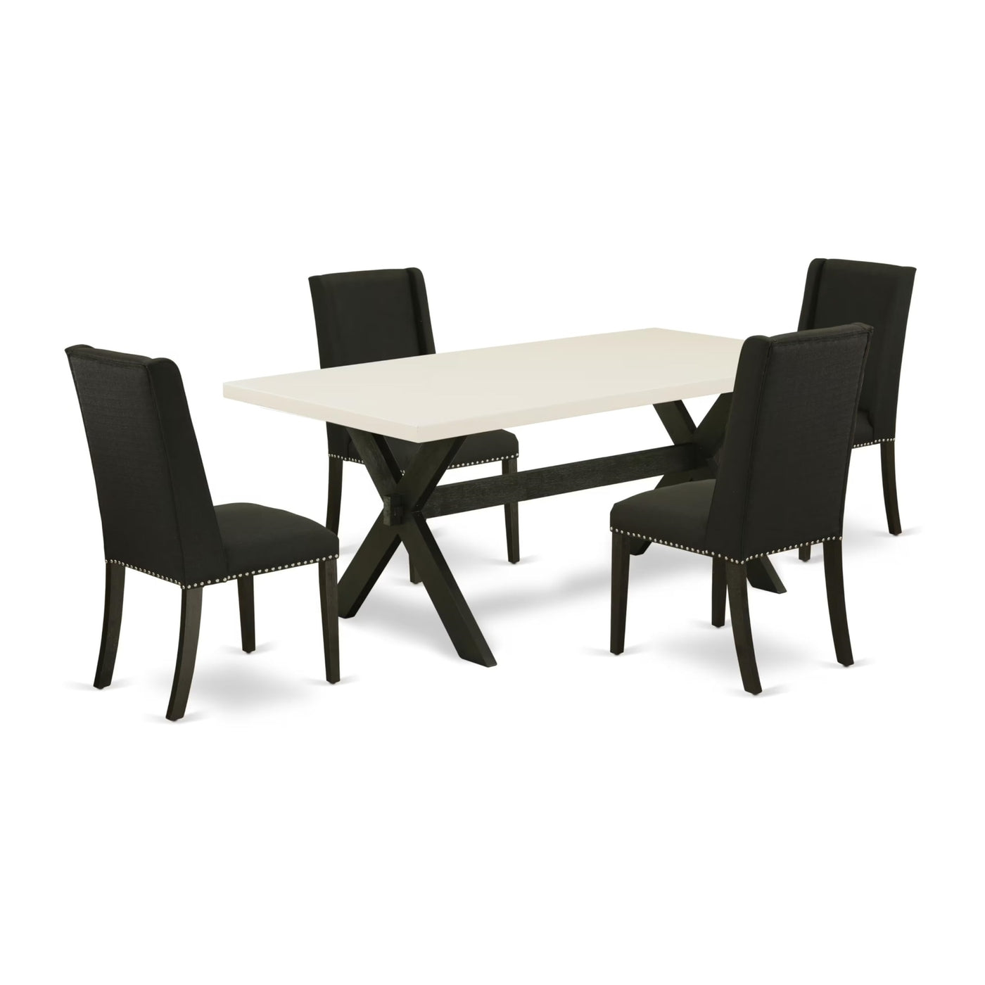 Casafoyer X627Fl624-5 5 Piece Dining Set Includes A Rectangle Dining Room Table With X-Legs And 4 Black Linen Fabric Upholstered Parson Chairs, 40X72 Inch, Multi-Color