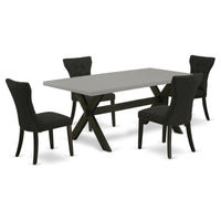 Casafoyer X697Ga124-5 5 Piece Room Furniture Set Includes A Rectangle Dining Table With X-Legs And 4 Black Linen Fabric Upholstered Chairs, 40X72 Inch, Multi-Color
