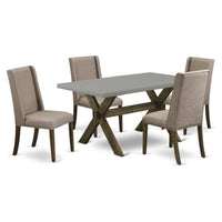 Casafoyer X796Fl716-5 5 Piece Modern Dining Table Set Includes A Rectangle Wooden Table With X-Legs And 4 Dark Khaki Linen Fabric Parsons Dining Chairs, 36X60 Inch, Multi-Color