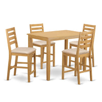 Casafoyer Yacf5-Oak-C 5 Piece Kitchen Counter Set Includes A Rectangle Dining Room Table And 4 Linen Fabric Upholstered Dining Chairs, 30X48 Inch, Oak