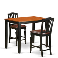 Casafoyer Yach3-Blk-Lc 3 Piece Counter Height Pub Set For Small Spaces Contains A Rectangle Kitchen Table And 2 Faux Leather Dining Room Chairs, 30X48 Inch
