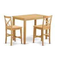 Casafoyer Yapb3-Oak-W 3 Piece Kitchen Counter Height Dining Table Set Contains A Rectangle Dining Room Table And 2 Wooden Seat Chairs, 30X48 Inch, Oak
