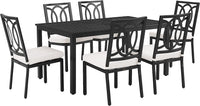 Enhance Your Dining Experience With The Exquisite Chambers 7Pc Dining Set. Constructed From Sturdy, Weather-Resistant Steel, Each Patio Chair Features An Elegant Backrest Embellished With An Interlocking Oval Design. The Chairs Are Complemented By Removable Seat Cushions For Enhanced Comfort. The Slatted Outdoor Dining Table Is Equipped With A Convenient Umbrella Hole, Providing A Shaded Oasis For Your Meals. Elevate Your Outdoor Dining Area With This Sophisticated And Functional Set, Combining Elegance And Practicality.