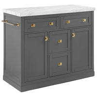 The Claire Kitchen Island Is A Must-Have For Every Kitchen, Effortlessly Blending Modern Design With Ample Storage. It Showcases Beautifully Crafted Cabinets, Offering Plenty Of Room To Neatly Store Dishes, Utensils, And Cooking Essentials. The Addition Of Full-Extension Drawers Enhances Its Practicality, Providing Even More Space For Efficient Organization. With Its Sophisticated Hardware And Faux Marble Countertop, This Island Exudes Luxury And Instantly Becomes The Focal Point Of Your Culinary Space.