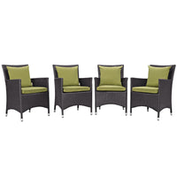 Convene Outdoor Sectional Series - 4 Piece Dining Set With Weather-Resistant Cushions, Synthetic Rattan Weave, And Aluminum Frame