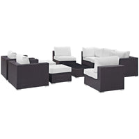 Experience Different Levels Of Sensitivity With The Convene Outdoor Sectional Series. Crafted With A Durable Synthetic Rattan Weave And A Powder-Coated Aluminum Frame, Convene Offers A Versatile Outdoor Furniture Set That Can Be Easily Adjusted And Combined To Meet Your Spontaneous Needs. Equipped With Weather-Resistant Fabric Cushions, This Series Not Only Leaves A Positive Impression On Your Friends And Family But Also Enhances Your Patio, Backyard, Or Poolside Gathering With Its Remarkable Design. This Specific Set Is The Outdoor Patio Sectional Sofa Set, Which Includes One Convene Outdoor Patio Coffee Table, Three Convene Outdoor Patio Armless Chairs, Two Convene Outdoor Patio Armchairs, Two Convene Outdoor Patio Corners, And Two Convene Outdoor Patio Fabric Ottomans.