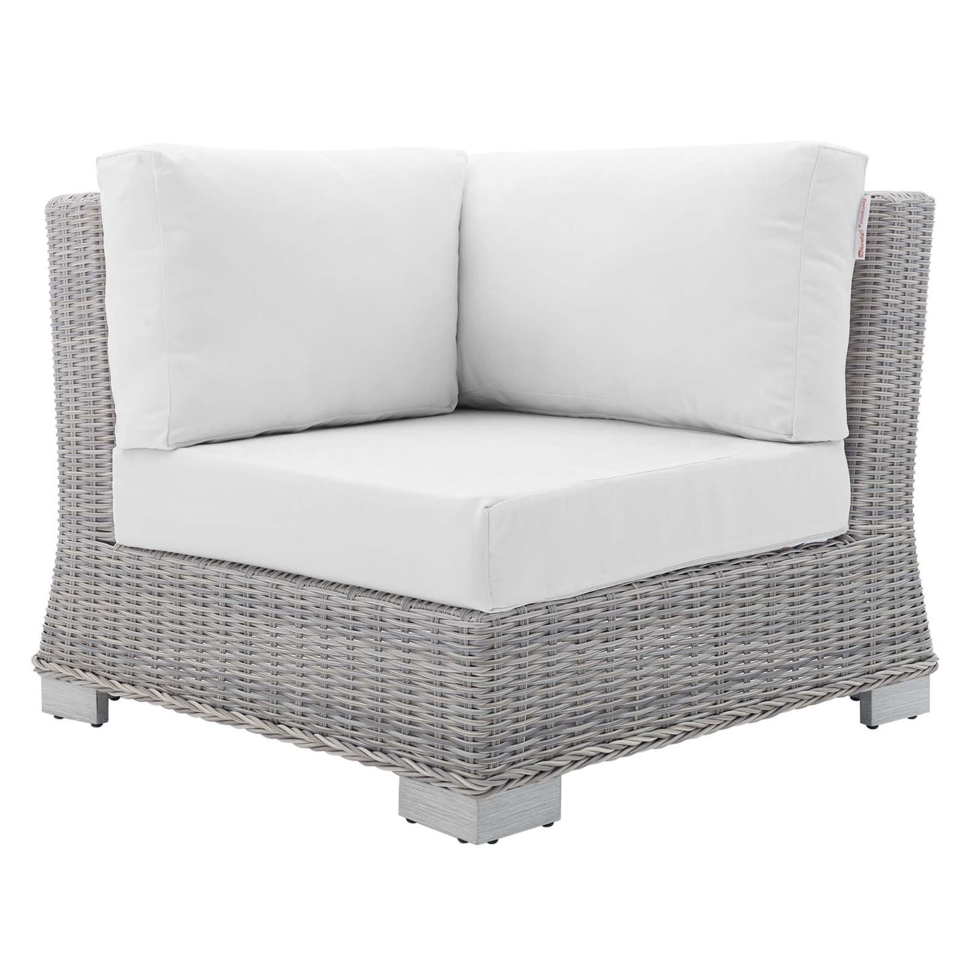 Enjoy Fresh Air And Alfresco Relaxation With The Conway Outdoor Patio Wicker Rattan Corner Sectional Sofa Chair. Wrapped In Uv-Resistant Light Gray Synthetic Wicker Rattan, This Sectional Sofa Piece Boasts Organic Texture And A Neutral Hue That Brings A Calming Presence To Your Outdoor Area With A Modular Design That Adapts To Variety Of Configurations To Suit Your Space. The Frame Of This Outdoor Chair Is Crafted With Durable Powder-Coated Aluminum And Rests On L-Shaped Legs With Plastic Foot Glides. Thick Foam Padded Cushions Covered With Washable Water-Resistant Sunbrella Fabric Covers Offer A Comfortable Seat And Affix Securely To The Corner Chair With Cord Tension Attachments. Trending Aesthetics And A Classic Design Define This Outdoor Patio Furniture Collection Making It A Beautiful Addition To Any Outdoor Space Including The Backyard, Patio, Porch, Balcony, Or Poolside. Assembly Required. Patio Chair Weight Capacity: 300 Lbs.Set Includes:One - Conway Sunbrella Corner Chair