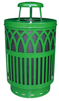 The Cov40P-Rc-Gn-Vv Ergode Covington Can Is A Decorative Waste Receptacle Designed With A Sleek And Contemporary Laser Cut Design. It Is Suitable For Various Environments Such As City Streets, Open-Air Malls, Universities, Parks, And Office Complexes. The Can Is Made Of Heavy Gauge Galvanneal Steel With A Tgic Polyester Powder Coat Finish, Ensuring Durability. It Also Features A Protective Coated Base To Prevent Paint Chipping And Rust Rings. The Can Comes With A Rigid Plastic Liner, Leveling Feet, Lid Attachment Kit, And Anchor Kit For Easy Servicing.