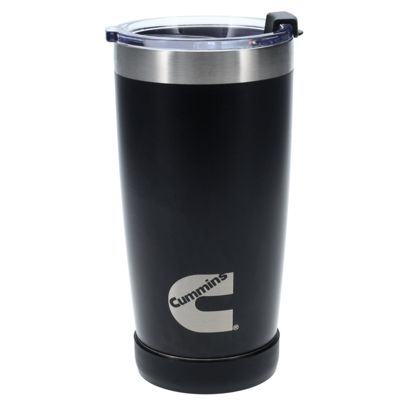 This Cummins Tumbler Has An Attractive Black Matte Finish And Branded With The Cummins Logo - The Perfect Travel Tumbler For Truckers And All Travelers Alike. The Secured Snap Seal Lid Provides Leak-Resistance And Splash Proof Drinking. It Does A Great Job At Keeping Liquids From Getting Out. Plus It Is Not Screw-On Nor Ridiculously Sealed So It Requires No Struggles To Get It Open One-Handedly When Ready To Drink. Easily Close It When Done. Holds 20 Ounces Of Your Favorite Drink Without The Lid On And 18 Ounces With The Lid Secured. This Is A Travel Mug Made Of Food-Grade Steel And A Bpa-Free Lid That Can Be Used Again And Again. You Cut Down On Landfill Waste By Avoiding Carry-Out Coffee Cups. What Really Makes This One Of The Best Travel Mugs Is That It Has A Magnetic Base On It. Adhere It To Any Metal Surface And You Have Extra Anti-Spill Protection. Plus It Comes With Its Own Flexible Anti-Slip Bottom Bumper. There Is No Handle And That Is On Purpose - We Do Not Care If You Are Left-Handed Or Right-Handed And You Dont Need To Be Worrying About Where Your Handle Is Positioned When You Are Ready To Enjoy A Nice Hot Drink Or A Refreshing Cold One Especially While Traveling. This Officially Licensed Cummins Tumbler Is A Great Gift For Truckers And Campers Alike. (Recommended Hand-Wash Only).Sip In Confidence With A Double Gasket Bpa-Free Lid With Snap Seal That Is Leak-Resistant And Splashproof Allowing You To Enjoy Hot Coffee Or A Iced Water While You Traveldouble-Wall Vacuum Insulation Keeps Hot Drinks Hot For More Than 5 Hours And Cold Drinks Cold For More Than 24 Hours