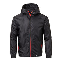 Cummins Cmn35396 Mens Lightweight Rain Jacket Windbreaker Water-Resistant Hooded Outerwear-Black And Red Xl