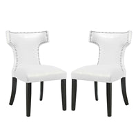 Transform Your Dining Decor With The Broadly Designed Curve Dining Side Chair. Sweeping Lines Complement A Minimalist Shape For A Chic Look Studded With Nailhead Trim. Curve Comes Generously Padded With Dense Foam Covered In Vinyl, Non-Marking Foot Caps, And Delivers Just The Right Touch Of Finesse With Tapered Wood Legs. Sporting An Hourglass Shape, Curve Works Well In A Variety Of Dining Room Arrangements.Set Includes:Two - Curve Dining Chair
