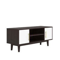 Encourage Mid-Century Modern Design In Your Living Space With The Daxton 43' Tv Stand. Sleek Lines, Splayed Legs, Gold Metal Hardware, And Contrasting Tones Create A Striking Piece For Your Living Room, Bedroom, Lounge Room, Or Home Office. Made With Particleboard, Mdf, And Beautiful Wood Grain Paper Lamination, Daxton Features Ample Storage Space With An Adjustable Center Shelf And Two Storage Areas Behind Solid White Doors. Cable Management Holes Make This Entertainment Console Ideal For Keeping All Your Media Essentials Organized. A Versatile Addition, This Television Stand Can Accommodate Tv'S Up To 46' And Also Serves As A Display Stand For Home Accessories, Decor, And More. Includes Non-Marking Foot Pads. Set Includes: One - Daxton 43' Tv Stand