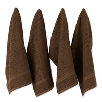 Dii Basic Terry Collection Waffle Dishtowel Set, 15X26, Solid Brown, 4 Piece