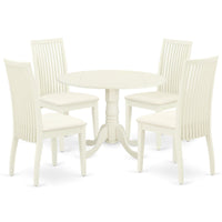Dlip5-Whi-C 5-Piece Dining Set, Pedestal Table & 4 Kitchen Chairs, Linen Fabric Seat, Slatted Back, Sturdy Wooden Legs, Linen White Finish, High-Quality Rubberwood, Easy Assembly, Perfect Addition To Any Home