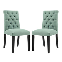 Introducing The Duchess Dining Chair, A True Embodiment Of Elegance And Sophistication. This Exquisite Chair Showcases A Gracefully Curved Design, Enhanced By The Exquisite Tufted Buttons Embellishing Its Backrest. Crafted With Utmost Care, It Offers Unparalleled Comfort With Its Dense Foam Padding And Luxurious Fabric Upholstery. The Chair Stands On Sturdy Wooden Legs, Thoughtfully Equipped With Non-Marking Foot Caps. Ideal For Contemporary Homes, This Set Comprises Two Duchess Dining Chairs, Enabling You To Fashion A Dining Area That Radiates Grace And Allure.