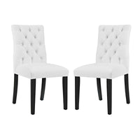 Duchess Dining Chair Set Of 2 - Elegant Curvy Design, Tufted Button Back, Comfortable Foam Padding, Vinyl Upholstery, Wood Legs, Non-Marking Foot Caps - White