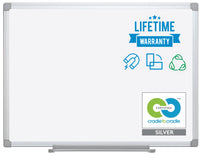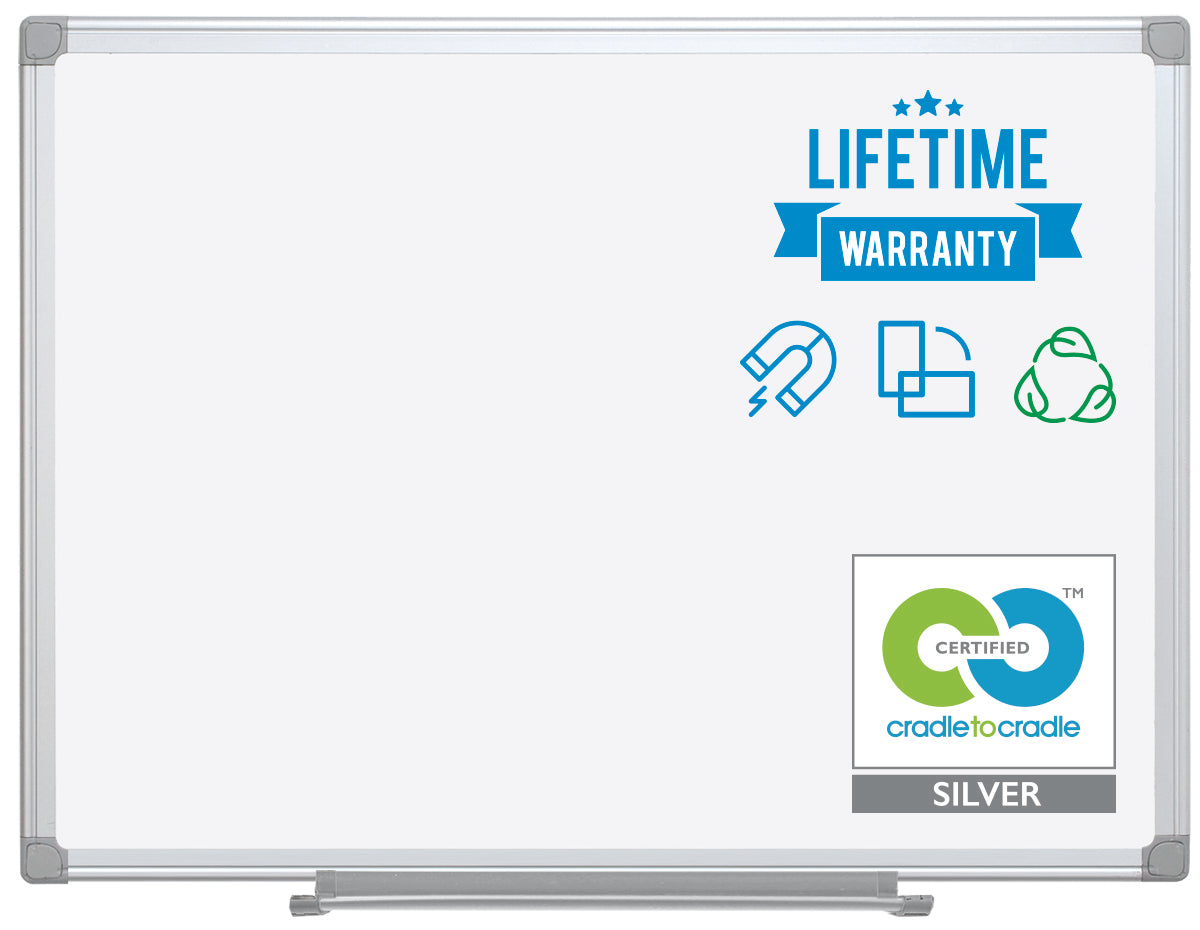 The Mastervisionearth Porcelain Magnetic Dry Erase Board Is An Eco-Friendly Solution That Combines The Best In Writing And Cleaning Performance With Professional Maya Frame Quality. Made From Recycled And Recyclable Materials, This 36 X 48 Earth Whiteboard Is Suitable For Extensive Use And Is Cradle To Cradle Silver Certified. The Magnetic Surface Resists Staining, Ghosting And Scratches, Cleans Easily. Framed In Sturdy Aluminum, It Has An Easy 4-Corner Mounting System That Can Be Positioned Either Vertically Or Horizontally - Offering Versatility When Reconfiguring An Office Or Where Wall Space Is Limited. The Adjustable Aluminum Pen Tray Offers A Convenient Way To Keep Your Writing Utensils Within Quick Reach.