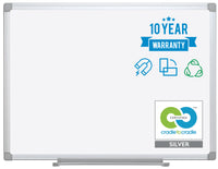 The Mastervisionearth Steel Magnetic Dry Erase Board Is An Eco-Friendly Solution That Combines The Best In Writing And Cleaning Performance With Professional Maya Frame Quality. Made From Recycled And Recyclable Materials, This 36 X 48 Earth Board Is Suitable For Extensive Use And Is Cradle To Cradle Silver Certified. . Framed In Sturdy Aluminum, It Has An Easy 4-Corner Mounting System That Can Be Positioned Either Vertically Or Horizontally - Offering Versatility When Reconfiguring An Office Or Where Wall Space Is Limited.The Adjustable Pen Tray Offers A Convenient Way To Keep Your Writing Utensils Within Quick Reach.