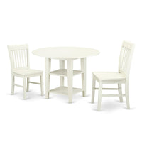 East West Furniture Suno3-Lwh-W 3 Piece Room Furniture Set Contains A Round Kitchen Table With Dropleaf & Shelves And 2 Dining C
