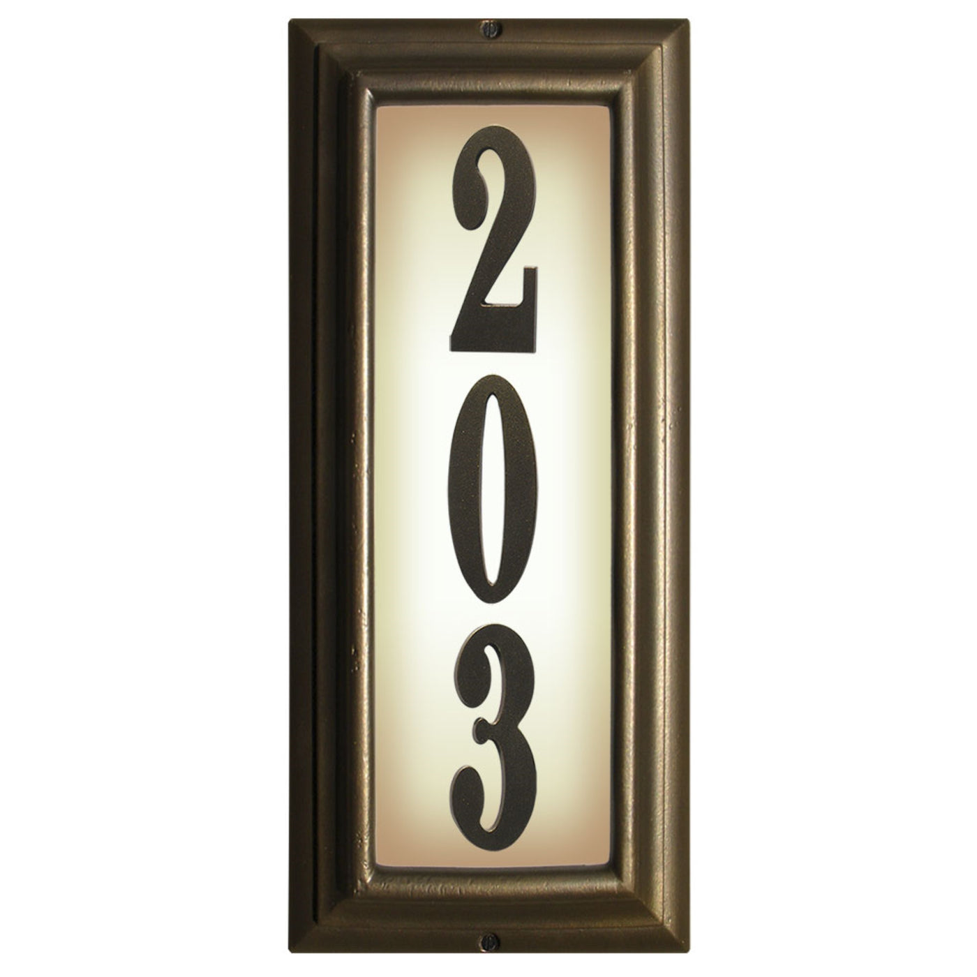 Edgewood Vertical Lighted Address Plaque In French Bronze Frame Color