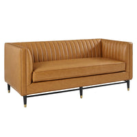 Elegant Devote Channel Tufted Vegan Leather Loveseat - Retro Design, High-Quality Upholstery, Luxurious Seating - Tan