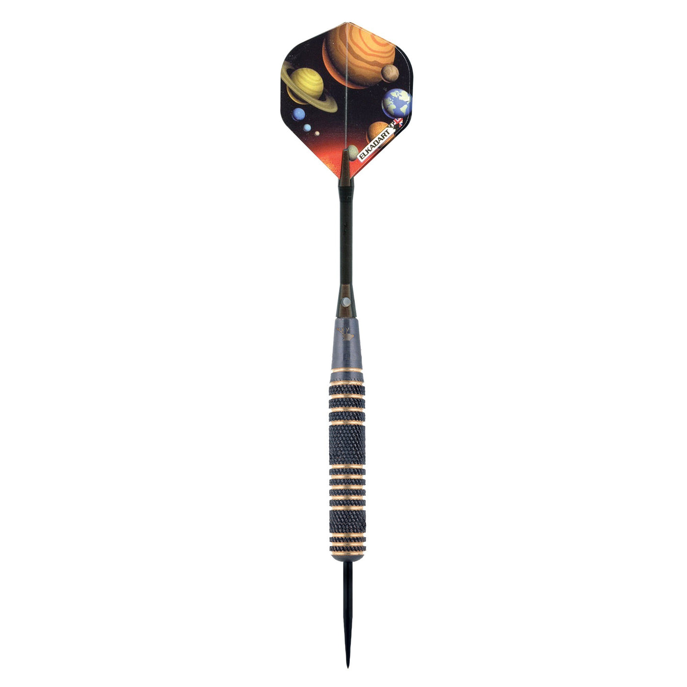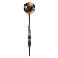 Boldly Take Your Game Where No One Has Gone Before When You Bring The Elkadart Orbital Steel Tip Darts, Designed For Use With Sisal Dart Boards. These Darts Are Packed With Features Starting With The Barrel, Fashioned From Chromed Bronze Alloy. Constructing The Darts In This Fashion Allows Us To Bring You Tough, Weighted Barrels Without Breaking The Bank. Used In Construction For Its High End Appearance And Durability At A Lower Cost, We Use This Alloy To Provide The Highest Quality Barrels At The Best Cost To You. Each Barrel Possesses Recessed Rings Allowing Your Grip To Remain Precise Throw After Throw. The Orbital Darts Feature Tough, Lightweight Aluminum Shafts. These Shafts Feature Locking Holes That Allow A More Secure Fit To Your Barrel; You Wont Find Yourself Retightening These Shafts After A Shot Or Two. Finally, Each Dart Is Finished Off With Stellar Solar System Designs Adorning Each Flight, For An Lightspeed Look On Each Dart. Each Set Includes Three Flights, Three Shafts, And A Slim Dart Case.