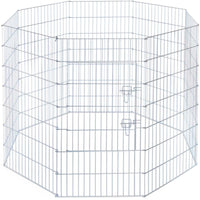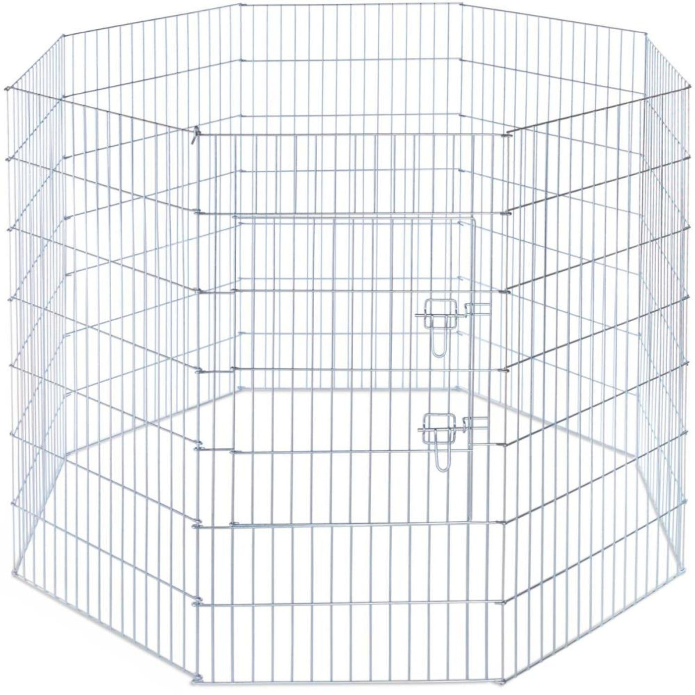 Prevue Pet Products Exercise Pen For Dogs 40142 Is Heavy Duty And Assembles Easily, No Tools Required! 8 Panel Exercise Pen Features Rust-Resistant Bright Zinc Finish Over Solid Steel Rods And Includes Grounding Stakes. Ideal For Small And Medium Sized Dogs, Each Panel Measures 24&Rsquo;&Rsquo; Wide And 42&Rsquo;&Rsquo; High. Front Access Door Has 2 Secure Latches And Measures 18 1/4' Wide And 23 1/4' High. Exercise Pen Folds Flat For Storage Or Travel And Measures Approximately 57&Rsquo;&Rsquo; In Diameter When Assembled. To Set It Up Simply Take It Out Of The Box, Make Sure The Door Is In The Lower Registry Of The Main Panel, Slide The Connector Pin (4 1/2' L) Through The Connection Loops And It'S Good To Go. Additionally, The 4 Grounding Stakes Can Be Used To Secure Exercise Pen Into Soil.