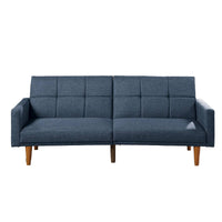 Featuring Mid Century Modern Style, This Polyfiber Upholstered Adjustable Sofa Is Here To Elevate The Comfort Level. The Square Tufted Backrest Opens Into A Bed As And When Required. The Splayed Legs Act As A Sturdy Source Of Support.