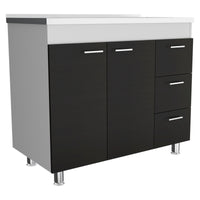 With Its Exclusive Design, The Tuhome Ferretti Base Cabinet Comes With A Handy Hole Specially Designed For Your Faucet On Its Ample Stainless Steel Countertop (39,37''W X 20,67''D), Made Of A Combination Of White-Black Resistant Particleboard.This Base Cabinet Is The Perfect Storage Solution For Your Kitchen Supplies! It Features A Contemporary Design That Will Complement Any Decor, And Its Ample Storage Space With Three Drawers (12,1''W X 8,5''H)Provides Plenty Of Room To Store All Your Supplies. The Cabinet Is Also Easy To Assemble, So You Can Start Using It Immediately.Exclusive Size (39,37''W X 20,67''D X 35,43''H)