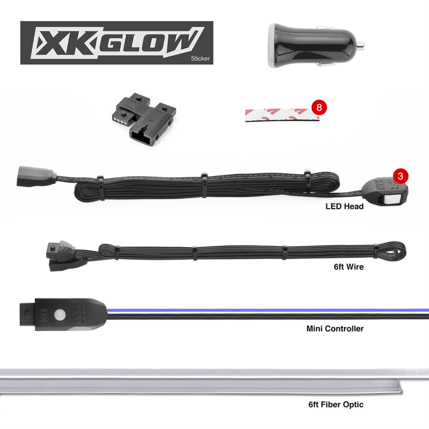This 6-Ft Fiber Optic Roll 3Pc Led Head Xkglow App Controlled Light Kit Allows A Truly Unique Way Of Dressing Up Your Vehicles Interior. When The Sun Goes Down Cue The Lights. Paired Standard With An Xkchrome Mini Bluetooth Controller The Features Never Stop. Install Is A Breeze With The Integrated Mounting Tab And Included 12V Plug.