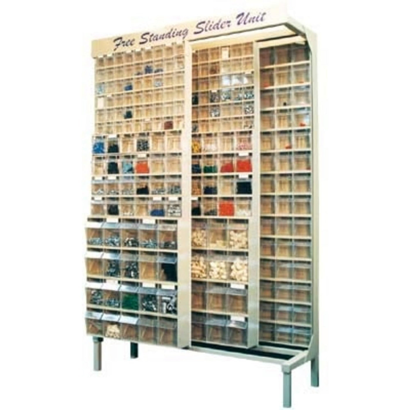 Free Standing Slider, 18D X 48W X 77H, 2000 Lbs Load Capacity, Made Of Though 14 Gauge Steel, Includes: (36) Qtb305 Tip Out Whit