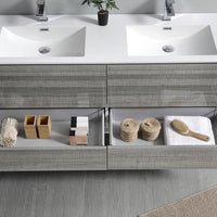 Fresca Catania 60 Glossy Ash Gray Wall Hung Modern Bathroom Cabinet W/ Integrated Double Sink