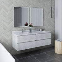 Fresca Formosa 60 Wall Hung Double Sink Modern Bathroom Cabinet W/ Top & Sinks In Rustic White