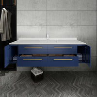 Fresca Lucera 60 Royal Blue Wall Hung Single Undermount Sink Modern Bathroom Vanity W/ Medicine Cabinet