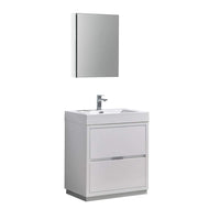 Fresca Valencia 30 Inch Glossy White Freestanding Modern Bathroom Vanity And Medicine Cabinet - Includes Integrated Sink With 2